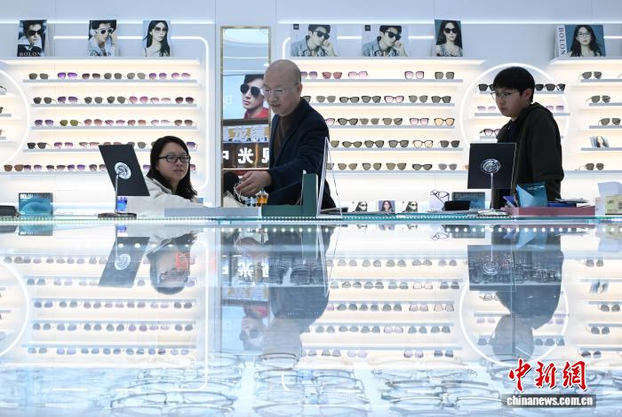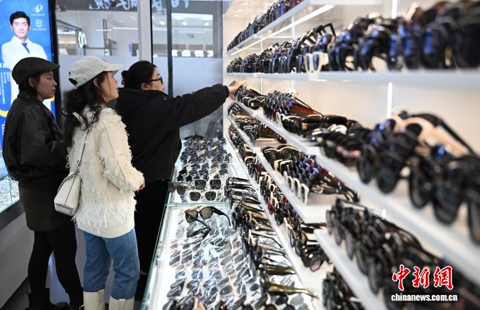 图为11月25日,华夏·杜桥眼镜乡内乱美不胜收的眼镜产物吸收采办者。中新社记者 王刚刚 摄
