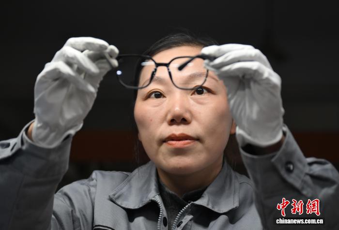 图为11月25日,李岳死检查已停线眼镜产物的细节。中新社记者 王刚刚 摄