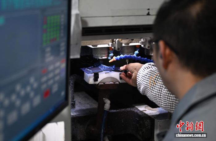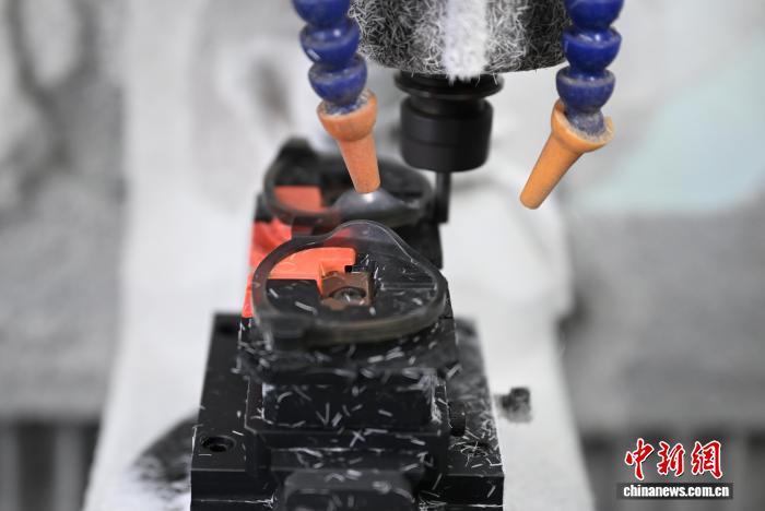 图为11月25日,工人正在数控机床内乱添工眼镜镜片。中新社记者 王刚刚 摄